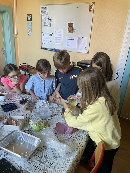 Avec madame Philippon, les élèves ont réalisé un cake sucré à base de châtaignes et de crème de marrons.