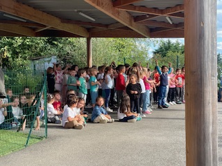 Le concert des maternelles annulé en juin à cause de la canicule, a pu avoir lieu ce mardi 9 septembre. Les élèves se sont rappelés très rapidement des paroles et des gestes. Nous les félicitons. Nous remercions les familles de leur présence. Merci également à Baptiste le professeur de musique.