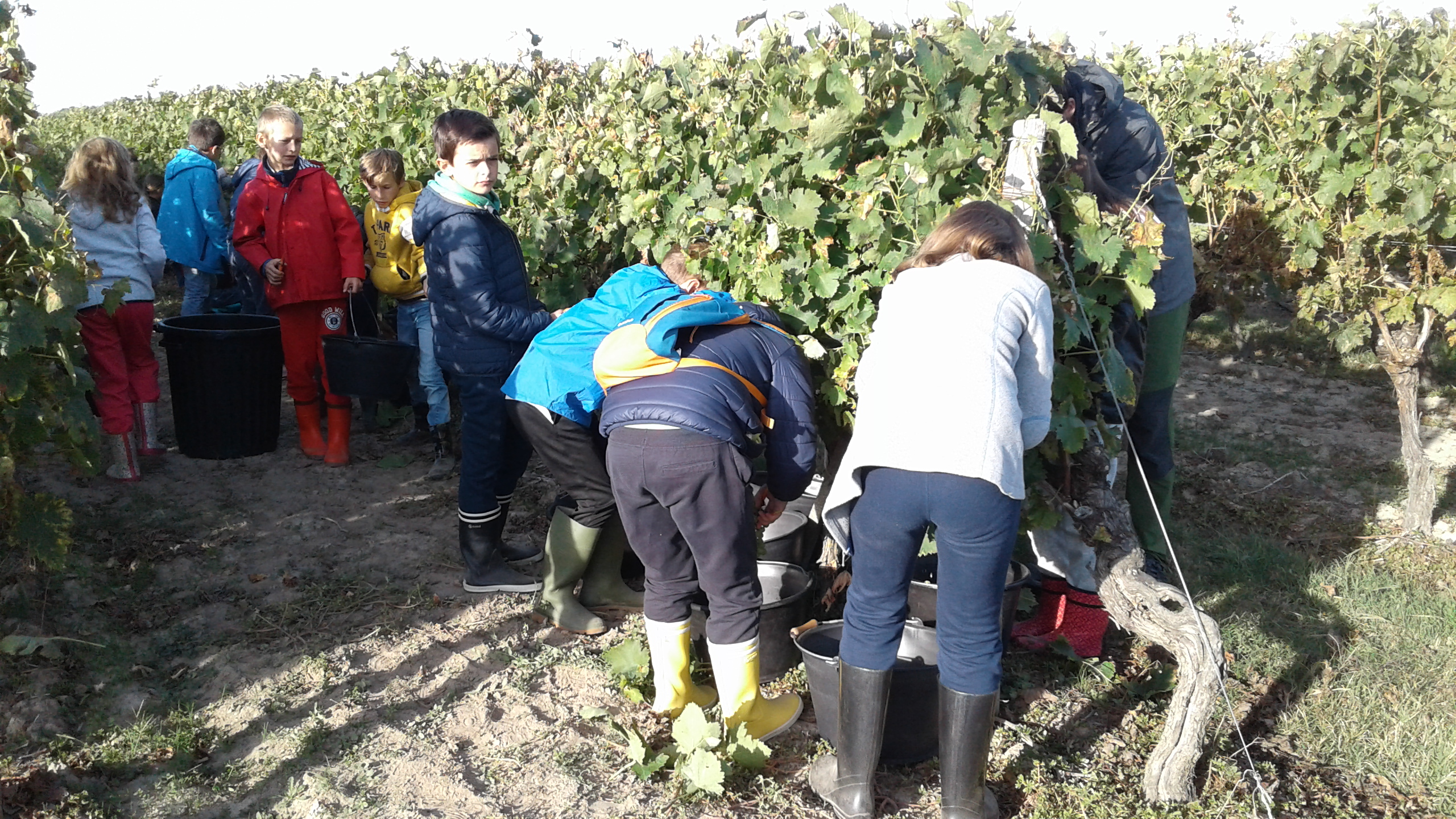 Ils ont découvert la viticulture : visite de l’exploitation Abel-Emmanuel R. à Epargnes, promenade dans les vignes, dégustation de raisin et découverte du matériel et véhicule (tracteur) spécifiques à la récolte du raisin, explication de la culture de la vigne…