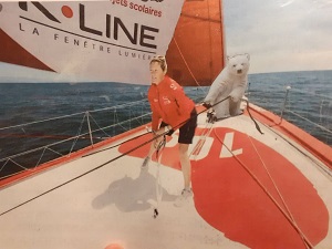 Nous avons préparé ce départ avec un skipper, le papa de Marin, un petit garçon de la classe. Il est venu nous parler de la course, nous a présenté le bateau, nous avons déplié les différentes voiles et déclenché une balise de détresse.