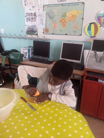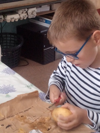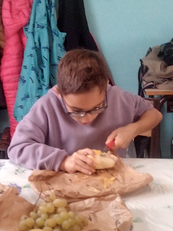 - Eplucher les pommes, les poires, les kiwis avec un économe.