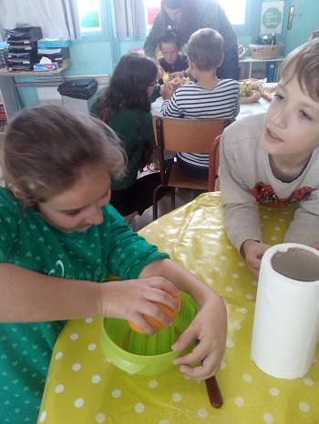 2 . Presser les oranges. Mettre le jus obtenu de côté.