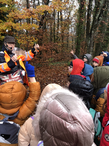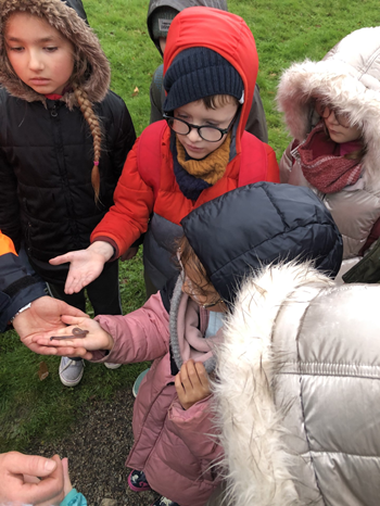 Le jeudi 30 Novembre après midi, la classe des CP/CE1 est allée au bois de la Bastide pour étudier les végétaux et les animaux avec leurs traces. Nous avons découvert quels animaux étaient présents dans le bois et grâce à quoi on pouvait le savoir (excréments, traces de pattes, trou, écorce, fruits grignotés…). Certains enfants ont pris un ver de terre dans leur main ! De plus, nous avons appris à reconnaître les feuilles et fruits des différents arbres (châtaigniers, chêne et chêne d’Amérique,…).