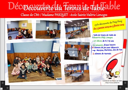 Durant cette période nous avons fait du ping-pong sur le club de l'Alouette. Nous avons découvert ce sport à travers des plusieurs jeux : la bataille navale, le jeu de l'oie et le morpion. Nous avons terminé par un tournoi. Nous avons beaucoup apprécié ces séances.