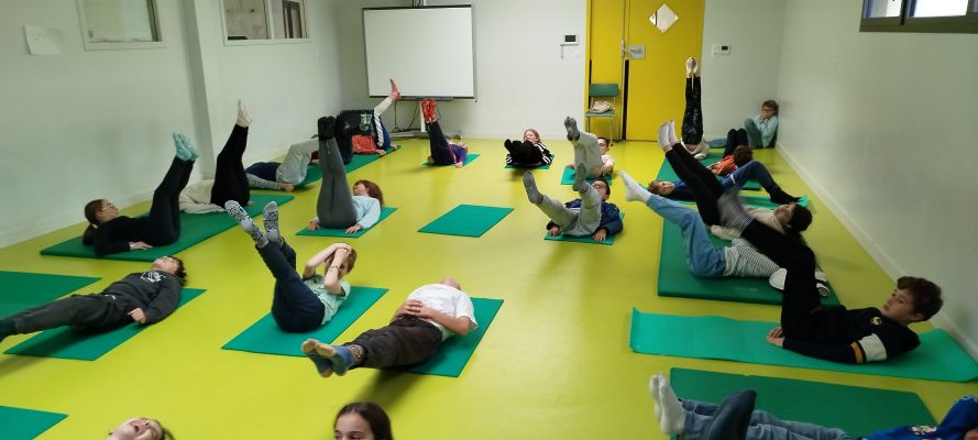 Pendant cette deuxième période , nous avons fait du yoga en apprenant à respirer et à se détendre ! Nous nous sommes rendus compte qu’il fallait faire travailler nos abdominaux pour pouvoir tenir des postures , mais ce n’était pas facile !