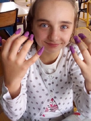 Constance : « Coucou Elisa ! On fait de la peinture avec la maîtresse. Je t’aime. »