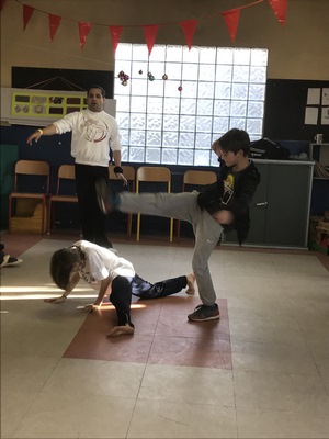 Lundi 10 décembre, la classe de CE2 était en pleine effervescence : les élèves préparaient le marché de Noël ! Trois adultes étaient venus nous prêter main forte. La mamie d’Yssandro fabriquait les étoiles illuminées avec un groupe tandis que d’autres élèves s’affairaient au découpage de cercles de carton et de papier ornés de « chocolat chaud » et « plonger dans du lait chaud ».